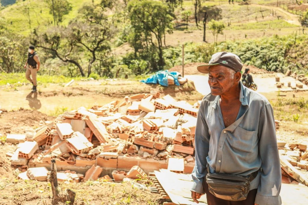Firmo é aposentado, diz ter deixado sua casa em um divórcio, e que não teria outro lugar para morar. O senhor tinha uma horta, plantava mandioca e outros legumes no lote. De acordo com ele, pretendia futuramente vender os produtos para sua própria subsistência.