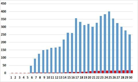 Em relação a 31 de março, o aumento de casos confirmados saltou de 2 para 19 (aumento de 850%), com acréscimo superior a 127%.