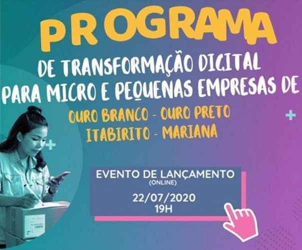 Neste sentido, a parceria SEBRAE e SICOOB CREDIMEPI apresenta a 1ª EDIÇÃO DO PROGRAMA CONTINUADO DE TRANSFORMAÇÃO DIGITAL para micro e pequenas empresas da região do Alto Paraopeba e Inconfidentes, contemplando 20 vagas deste programa para as cidades de Itabirito, Mariana, Ouro Branco e Ouro Preto.
