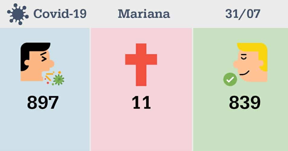 Esta atualização corresponde à situação da pandemia em Mariana, incluindo dados divulgados nos boletins e notas técnicas no período de 25 a 31de julho, completados 138 dias desde o anúncio do primeiro caso positivo de contaminação na cidade.