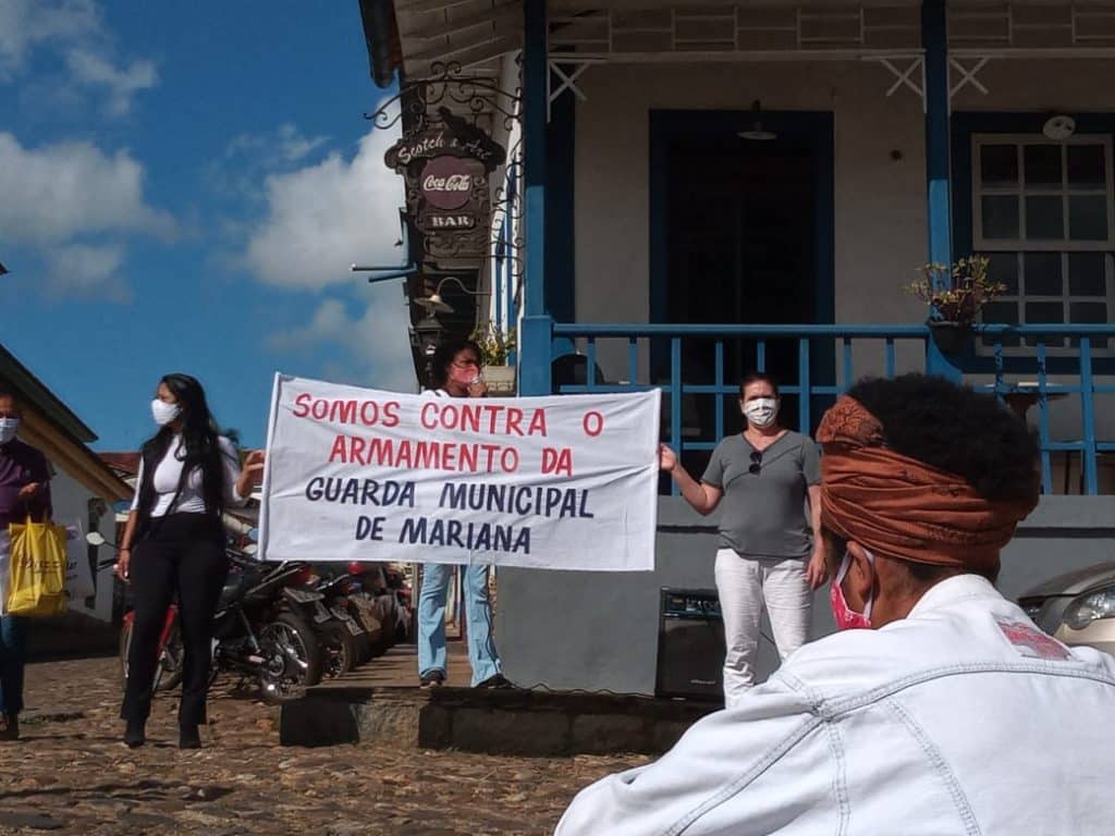 A Câmara Municipal de Mariana aprovou, na manhã de hoje (03), o projeto de lei que regulamenta e autoriza o porte de armas de fogo pela Guarda Civil do município. O projeto divide opiniões e, na última semana, dois abaixo-assinados virtuais foram criados sobre o tema. Durante a votação, uma pequena manifestação contrária ao armamento da guarda foi realizada em frente à Câmara.