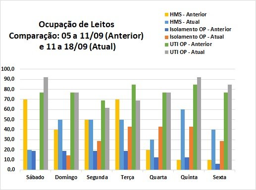 Com 4.835 casos confirmados, de acordo com os dados divulgados até esta sexta-feira (18), a Região dos Inconfidentes teve crescimento de 7,6% contra 5,3% na semana anterior (04 a 11/09). No período considerado para esta atualização (12 a 18/09), a taxa de ocupação dos leitos de UTI disponíveis na Santa Casa de Misericórdia não chegou ao teto em nenhum dia pela segunda semana consecutiva, mas só apresentou disponibilidade de 1 leito no sábado (12) e na quinta (17), com média de 79,1% de ocupação na semana. Nos leitos de isolamento e na Clínica Médica do Hospital Monsenhor Horta as taxas médias de ocupação tiveram ligeira alta, atingindo 28,6 e 42,9%, respectivamente.
