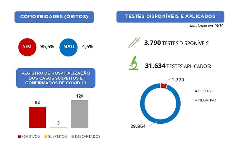 Nossa reportagem foi informada que a divulgação dessas informações passou a ser feita por determinação do Tribunal de Contas da União (TCU, mas permanecem indisponíveis dados relacionados à prevalência de casos positivos por bairros da sede e distritos do município, assim como a relação entre pacientes sintomáticos e assintomáticos entre os casos confirmados.