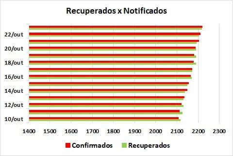Evolução da Covid-19 de 10 a 23/10 (duas últimas semanas)