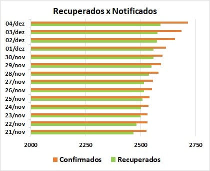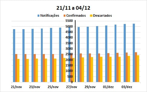 Evolução da Covid-19 em duas semanas (de 21/11 a 04/12)