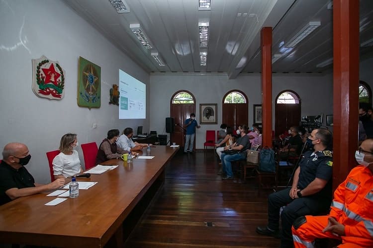 Para anunciar as medidas restritivas contra a Covid-19, a Prefeitura de Ouro Preto acabou promovendo uma pequena aglomeração na coletiva de imprensa, realizada na tarde dessa sexta-feira (05). Além de representantes dos veículos de comunicação da região, o evento reuniu diversos secretários municipais e vereadores, além de representantes de instituições que atuam no combate ao coronavírus, como a Universidade Federal de Ouro Preto, Polícia Militar, Corpo de Bombeiros e Guarda Municipal. A coletiva também foi transmitida pela página do Executivo no Facebook.