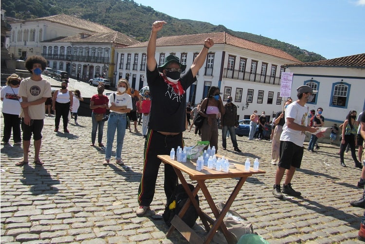 “A organização e todas as pessoas que ficaram de organizar o #29M aqui em Ouro Preto estão de parabéns. Tudo com demarcação no chão, com distanciamento, respeitando esse momento tão difícil que a gente está vivendo. Estar aqui é um ato cívico, é um ato político, é um ato pela vida”, declara a historiadora e pesquisadora Sidnéa Santos. A ouro-pretana complementa sobre o lado social da pandemia: “São praticamente meio milhão de brasileiros mortos. E a gente sabe a cor e a classe social das pessoas que estão morrendo. Por mais que famosos, pessoas importantes, também estejam, infelizmente, sendo vítimas da Covid, as maiores vítimas são as pessoas pobres, são as pessoas pretas, são as pessoas da periferia”.