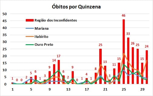 Mortes decorrentes da Covid-19 na Região dos Inconfidentes