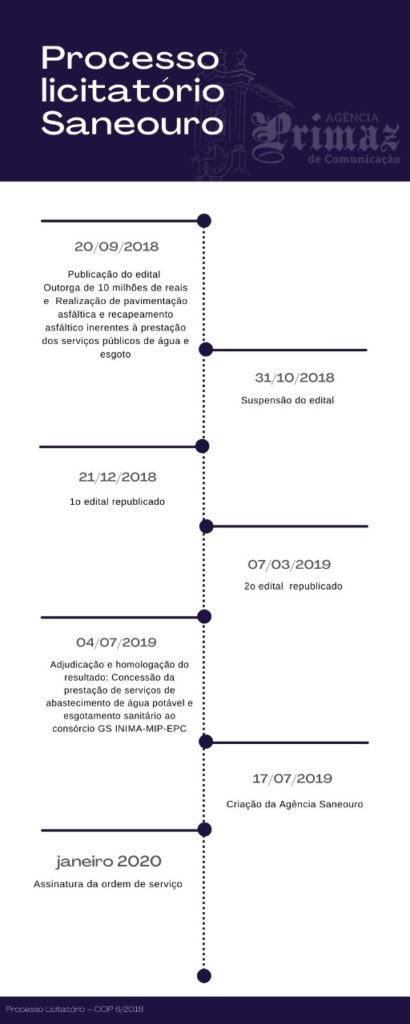 A Comissão Parlamentar de Inquérito, CPI da Saneouro, foi instaurada em 20 de maio de 2021 e busca apurar e investigar o processo licitatório e o contrato de concessão da empresa Saneouro.