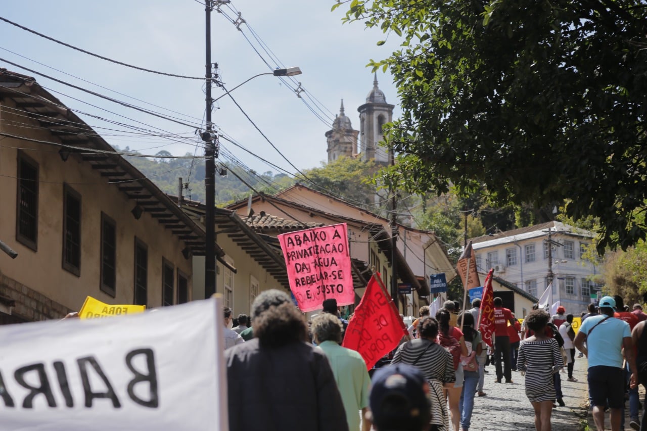 Du Veloso também reclamou da tarifa social que, de acordo com o contrato assinado com a Saneouro, atenderá, apenas, 5% da população ouro-pretana. “A gente sabe que, em Ouro Preto, mais de 25% das pessoas estão abaixo da linha da pobreza. Esse contrato tem que ser extinto, assim como o prefeito prometeu na campanha. Então esse movimento é mais para dar esse empurrão, para que o prefeito tome logo uma iniciativa de romper esse contrato e remunicipalizar o saneamento no nosso município.”