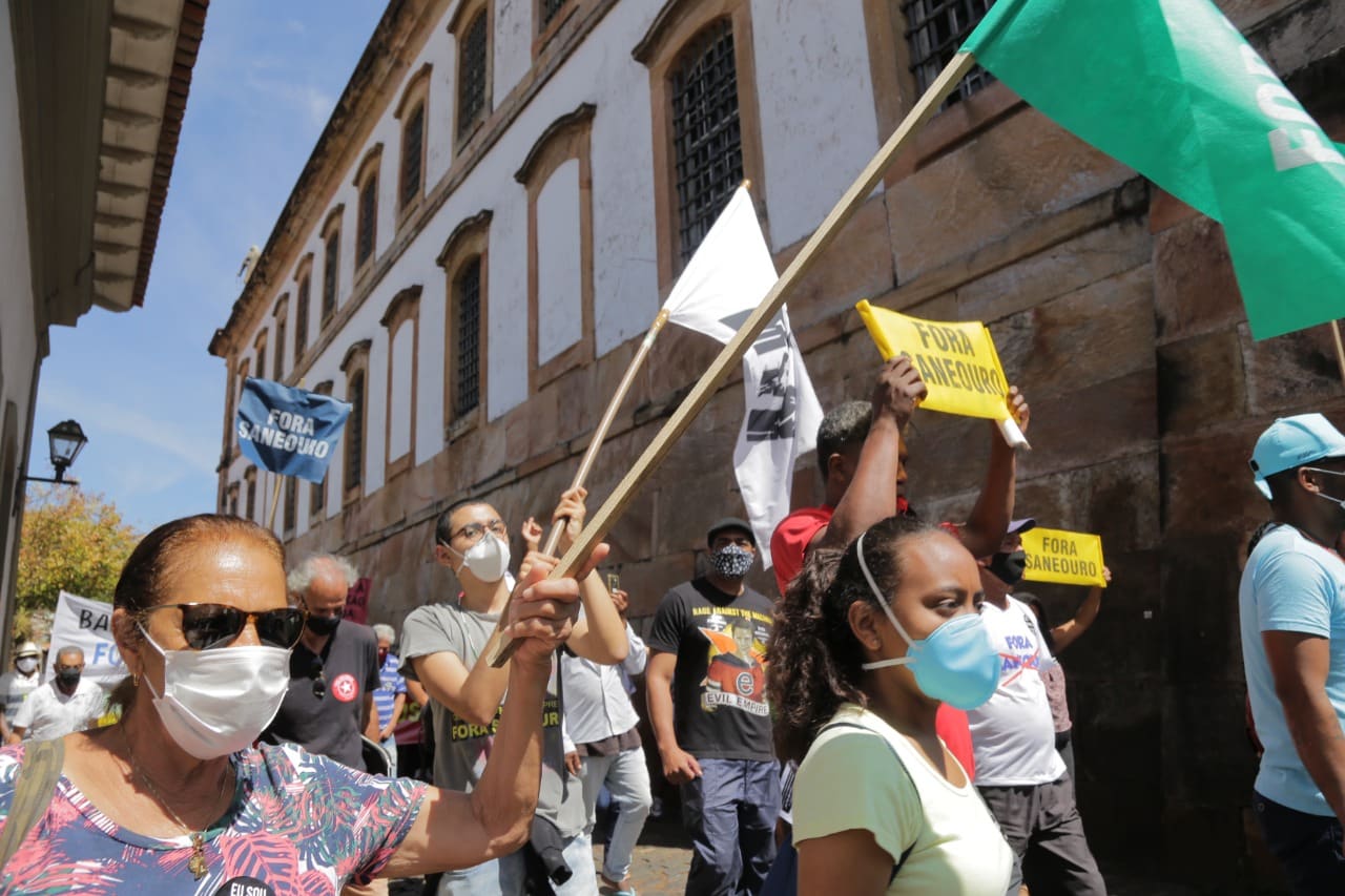 Du Veloso, que é membro do Comitê Central de Mobilização, explica que a caminhada “é uma iniciativa de vários movimentos sociais de Ouro Preto, pedindo o Fora Saneouro.” O manifestante também afirmou que o contrato assinado com a Saneouro é “extremamente lesivo” para os cidadãos. “A gente tem a patrulha da água, o comitê sanitário, o comitê central de mobilização, o sindicato assufop. Então foi a junção de todos esses movimentos. O contrato que foi feito com essa empresa é extremamente lesivo para a população de Ouro Preto.”