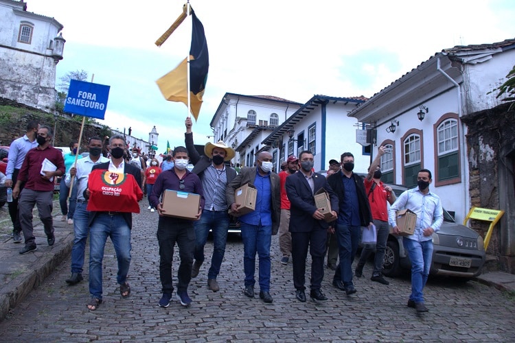 Parecia 15 de novembro de 2020, no qual Ouro Preto confirmou Angelo Oswaldo como seu prefeito pela terceira vez. Mas era quinta-feira, 7 de outubro de 2021, quando centenas de ouro-pretanos foram às ruas para acompanhar a entrega do relatório final da CPI da Saneouro ao Ministério Público de Minas Gerais e à Prefeitura Municipal de Ouro Preto. Dessa vez, grupos como Direita Minas e o Movimento dos Trabalhadores Sem Teto marcharam juntos por um único objetivo: pedir “Fora, Saneouro”.