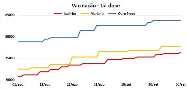 Com esses números, a região alcança, até 30 de setembro, o total de 393 óbitos, sendo 100 (25,4%), 131 (33,3%) em Ouro Preto e 162 (41,2%) em Itabirito.