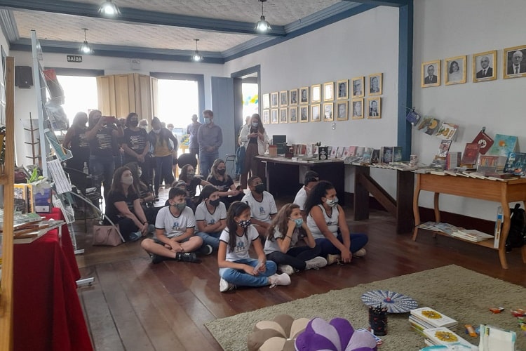Acompanhando os alunos, com idades variando entre 8 e 10 anos, juntamente com outras professoras, em uma viagem que durou aproximadamente 5h, a Diretora da E. M. Cel. José Brás, Luiza Domingos Machado falou sobre a utilização da poesia aldravista em praticamente toda a rede municipal de ensino, como instrumento de incentivo à leitura. “Nós temos lá a quinta Academia Brasileira dos Autores Aldravianistas do Brasil. Para nós é uma honra muito grande trabalhar com essa poesia, porque as crianças encontram uma facilidade maior [para estudar literatura e poesia]. O jogo de palavras, a sensibilidade, fazem levar à poesia”, afirmou a diretora, ressaltando que o estudo de autores clássicos é incentivado nos alunos que, após a leitura, reproduzem a ideia geral em poesias aldravianistas. “Desta forma, fica muito mais fácil do que você jogar palavra soltas. Então você trabalha um determinado livro, e finaliza com a poesia aldravianista. Porque eles vão ter bagagem para compor e isso desperta muito o interesse deles pela leitura, com entusiasmo e alegria”, finalizou Luiza Machado.
