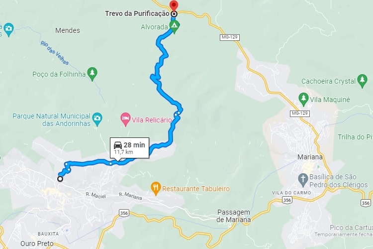 A Serra do Espinhaço, cujo trecho localizado na Região dos Inconfidentes é chamado de Serra de Ouro Preto, é o divisor de águas das bacias dos rios Doce e das Velhas, tendo servido de ligação entre a antiga Vila Rica e outras regiões. A Estrada da Purificação, com traçado sinuoso e bastante íngreme em vários trechos, aos poucos foi deixando de ser usada, fazendo com que a rota passando pela cidade de Mariana se transformasse na principal ligação entre Antônio Pereira e Ouro Preto.