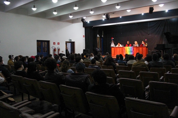 No Auditório do Grêmio Literário, a mesa foi mediada por Patrícia Valim, professora do Departamento de História e do Programa de Pós-Graduação em História da Universidade Federal da Bahia (UFBA), que há um ano está em cooperação técnica com o Programa de Pós-Graduação e o Departamento de História da UFOP. A mesa também contou com a presença de Victor Pinto, biólogo, doutor em Ecologia e ativista LGBTQIAP+, e Allie Barbosa, mulher transgênero e estudante de Artes Cênicas na UFOP, participante do projeto de extensão “POC: Papear, Ouvir e Conscientizar”.