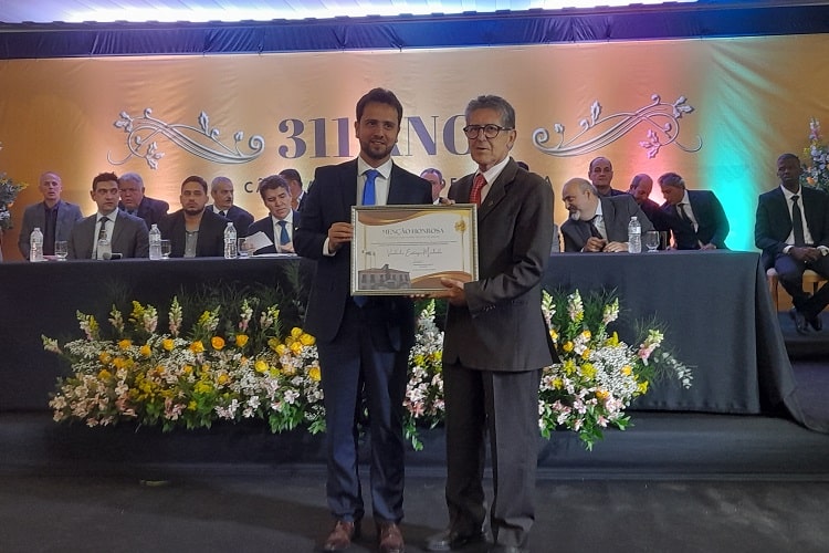 Luiz Fernando Bandeira de Mello, indicado pelo vereador Ediraldo Ramos (Avante) para receber o título de Cidadão Honorário de mariana, foi representado na solenidade pelo ex-vereador Cristiano Vilas Boas. Membro do Conselho Nacional de Justiça (CNJ) e relator da mediação exercida por esse órgão no processo de repactuação referente ao rompimento da barragem de Fundão, Bandeira de Mello encontra-se em Bordeaux, em visita a seus filhos, residentes nessa cidade francesa. Em mensagem, o desembargador, que já exerceu o cargo de secretário geral da Mesa do Senado Federal, agradeceu a homenagem. “Como agente público, forjado no Poder Legislativo, toca-me profundamente a enorme homenagem que recebo dos vereadores e vereadora desta Casa de Leis mineira”.