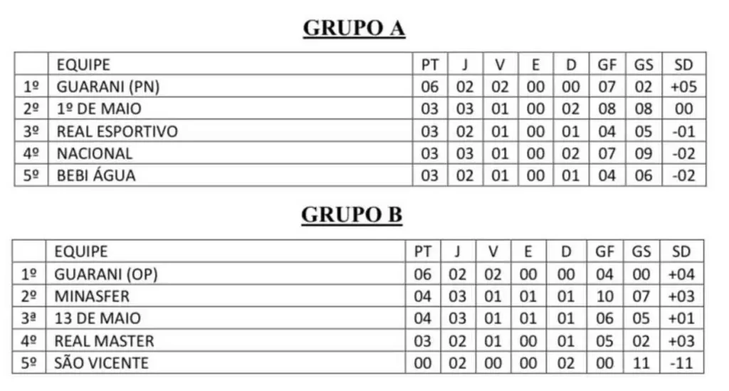 No domingo (12), o Guarani (PN) venceu o Real Esportivo por 4 a 1, acontecendo, na sequência o empate, por 2 gols, na disputa entre 13 de Maio e Minas Fer.
