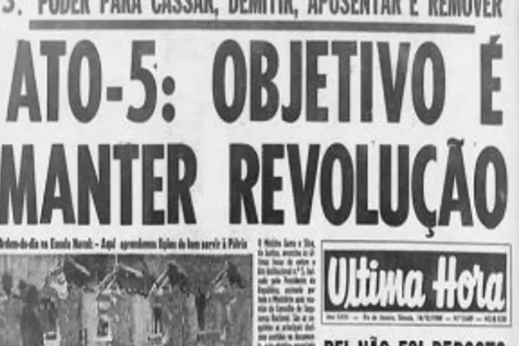O Ato Institucional nº 5, AI-5, baixado em 13 de dezembro de 1968, durante o governo do general Costa e Silva, foi a expressão mais acabada da ditadura militar brasileira (1964-1985). Vigorou até dezembro de 1978 e produziu um elenco de ações arbitrárias de efeitos duradouros. Definiu o momento mais duro do regime, dando poder de exceção aos governantes para punir arbitrariamente os que fossem inimigos do regime ou como tal considerados. (Fonte: https://cpdoc.fgv.br/producao/dossies/FatosImagens/AI5)