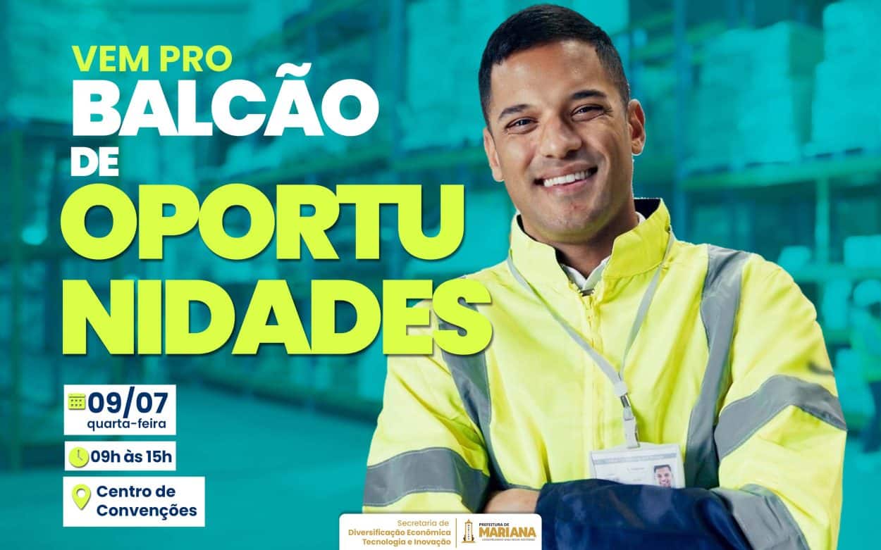 O Balcão de Oportunidades será realizado na próxima quarta-feira (09), das 9h às 15h, no hall inferior do Centro de Convenções de Mariana. A ação é promovida pela Prefeitura de Mariana, por meio da Secretaria de Diversificação Econômica, Tecnologia e Inovação, em parceria com o Sine Mariana.