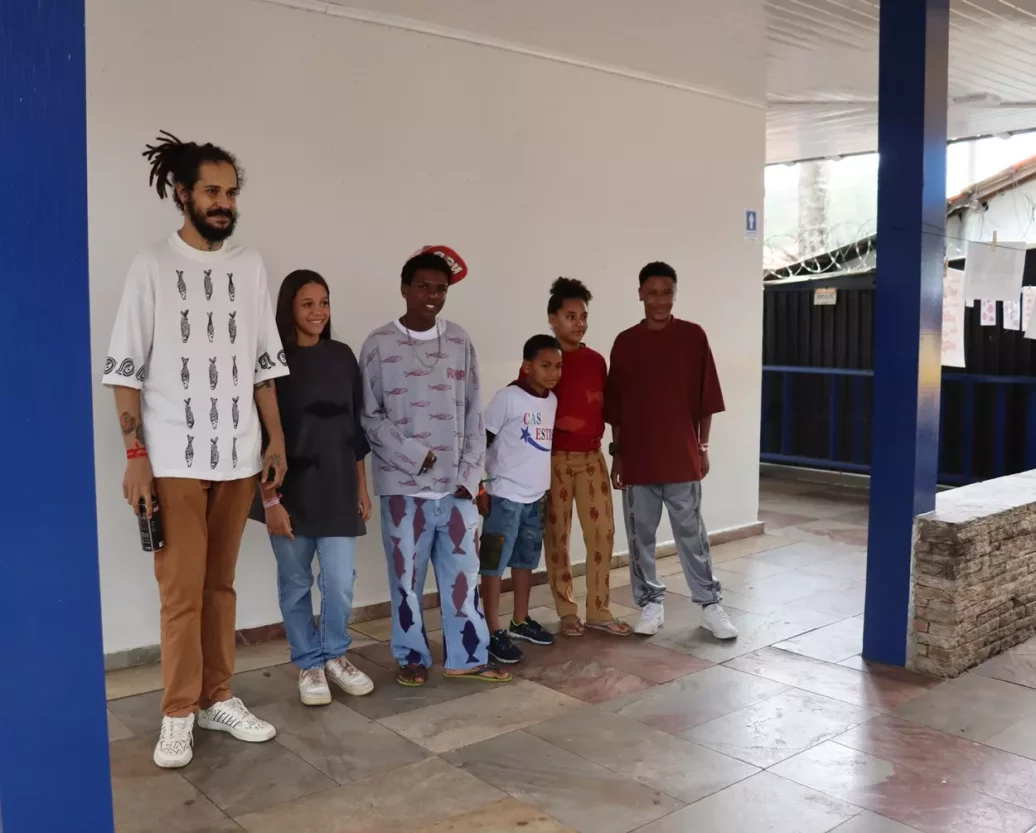 A abertura contou também com um desfile das crianças da Casa Lar Estrela, que vestiram peças da coleção “Águas”. A parceria com a Casa veio das oficinas que Bruno ministrou para as crianças no ano passado. No final do projeto, os alunos trabalharam com estamparia. A coleção de Bruno têm estampas inspiradas em peixes nativos das bacias do Rio Doce e da Amazônia.