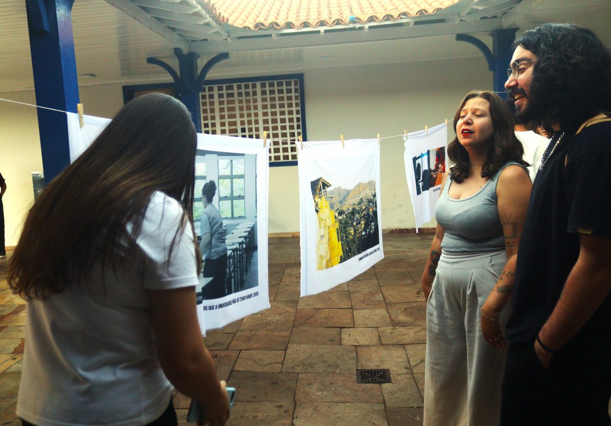Terminal Turístico recebe exposição produzida por estudantes de jornalismo da UFOP, com fotografias apresentados em varais e tecidos