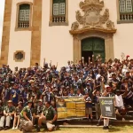 Na chegada à Praça Minas Gerais, o grupo encontrou escoteiros de várias partes do país, que estavam em Mariana para um encontro nacional. Crianças e instrutores se juntaram à festa, dançando e cantando junto dos artistas. O momento, espontâneo e cheio de vida, resumiu o espírito do Festeco: um festival que une arte, juventude e comunidade, transformando cada encontro em celebração.
