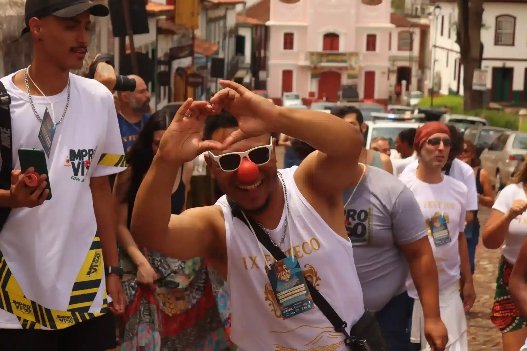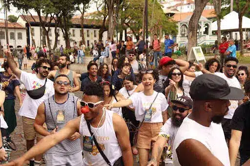 As ruas de Mariana foram tomadas pela alegria do cortejo do FESTECO, que percorreu o centro histórico em uma verdadeira celebração da arte e da juventude. A trilha sonora ficou por conta do grupo Som de Amigos, que animou o trajeto com um repertório vibrante, misturando clássicos da MPB, samba, pagode e canções populares que ecoaram no centro histórico.