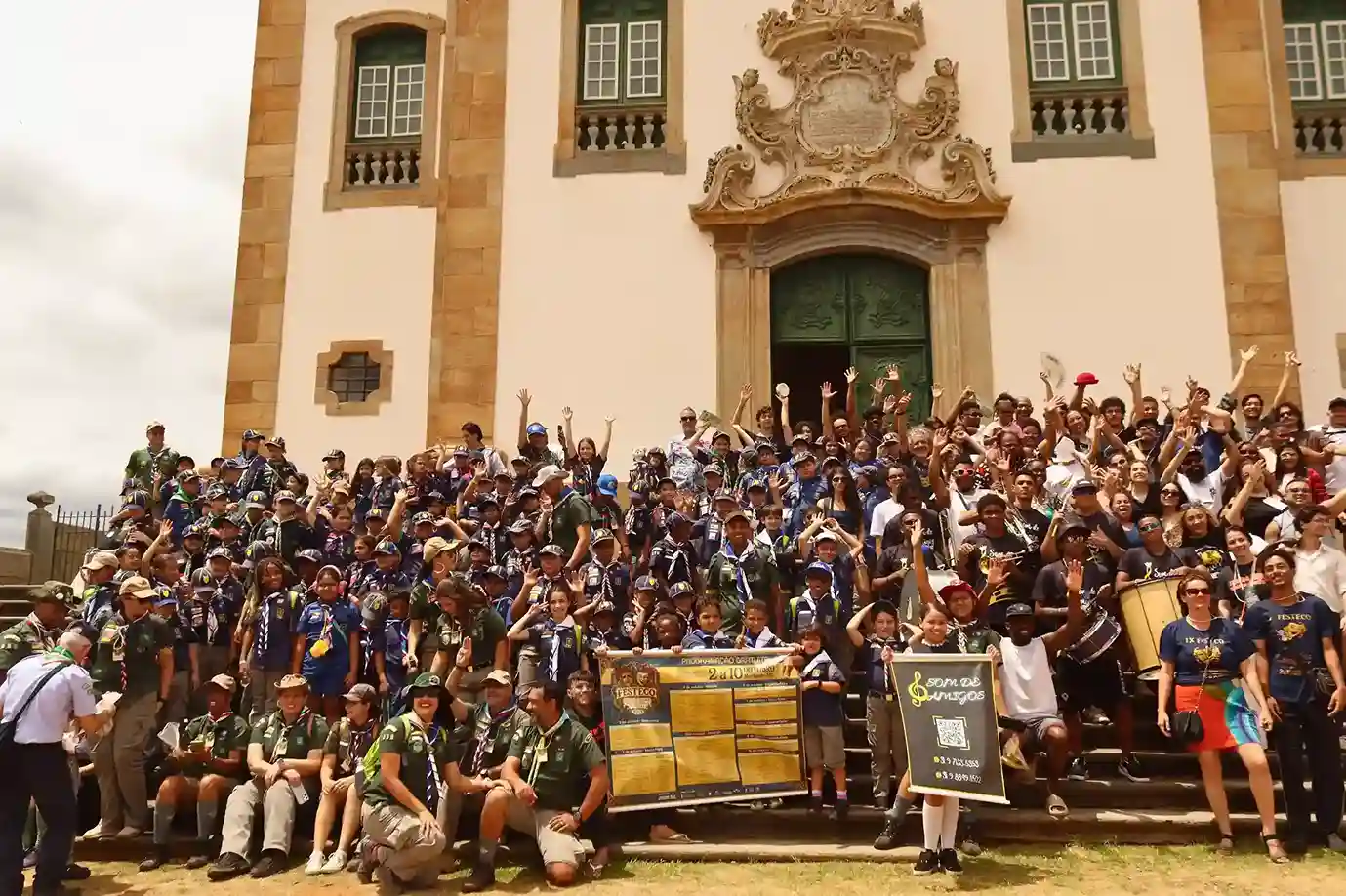 Na chegada à Praça Minas Gerais, o grupo encontrou escoteiros de várias partes do país, que estavam em Mariana para um encontro nacional. Crianças e instrutores se juntaram à festa, dançando e cantando junto dos artistas. O momento, espontâneo e cheio de vida, resumiu o espírito do Festeco: um festival que une arte, juventude e comunidade, transformando cada encontro em celebração.