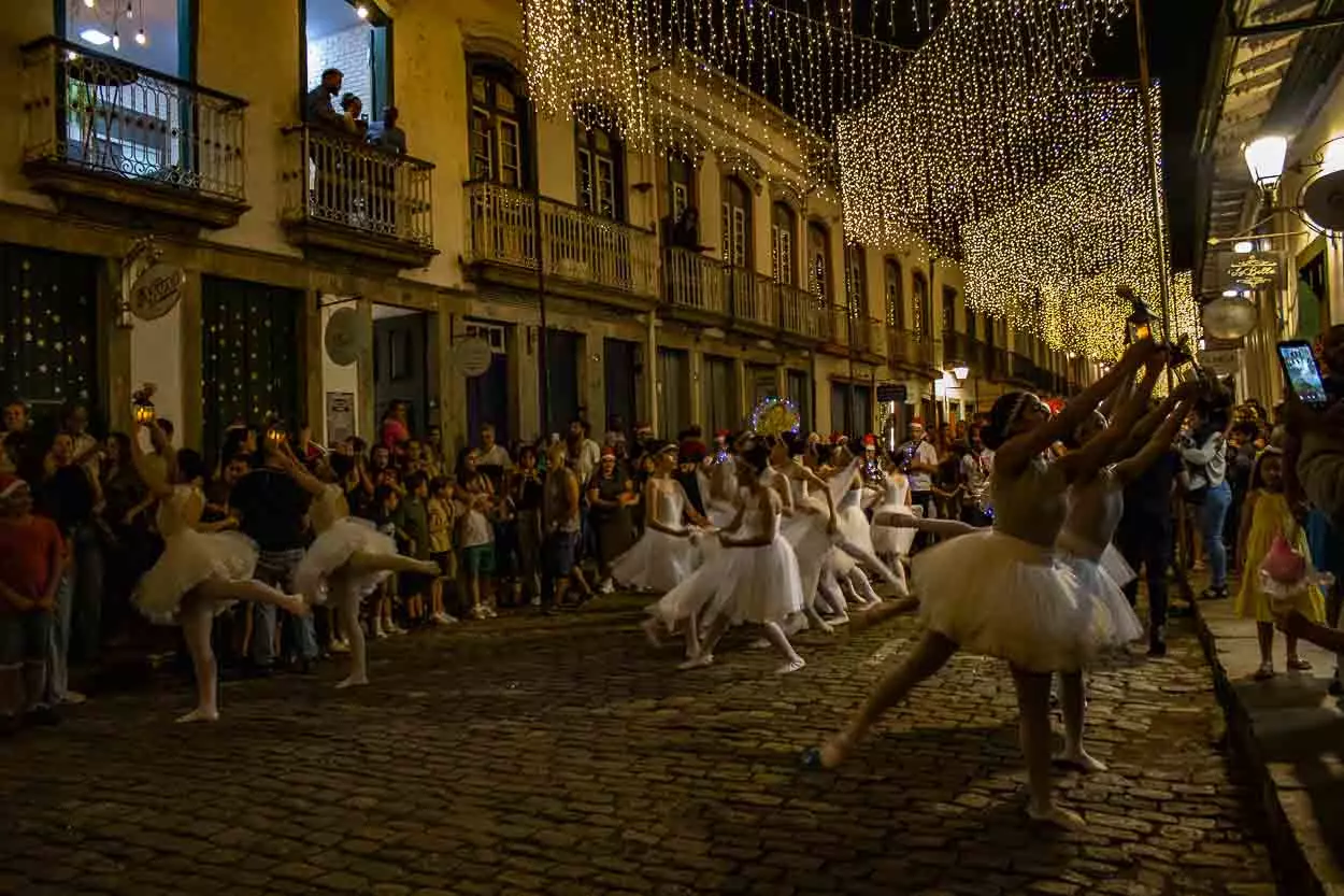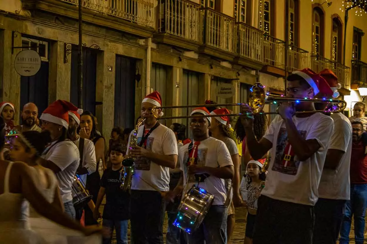 Os marianenses tiveram a oportunidade de participar do cortejo natalino que se iniciou no Centro de Atenção ao Turismo (CAT), na rua Direita e teve como destino a Praça Gomes Freire. A preparação dos artistas participantes já animava quem passava com músicas natalinas no instrumental, quase como uma marchinha de carnaval.