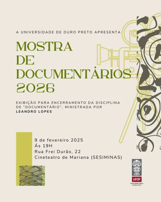 Para encerrar a mostra O Passado Vivido, segundo ato do ciclo dedicado à produção documental brasileira, o //Paralelas recebe três convidados especiais para apresentação e conversa sobre projetos autorais: Ben Hur Nogueira, com o filme Andança; Ilídio Ribeiro, representando a equipe de Na Força da Peneira; e Maysa Mendes, proponente de Entre Nós. A sessão acontece na terça-feira, dia 10, às 10h, no Cineteatro Municipal de Mariana, com entrada gratuita e aberta ao público.