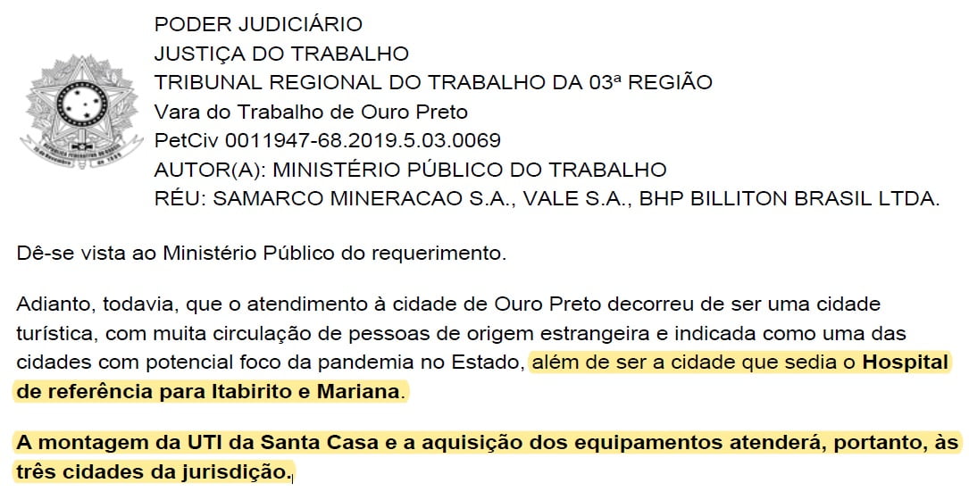 Verba liberada pelo TRT causa divergências entre Vereador e Secretário de Saúde em Mariana Luiz Loureiro 2 de abril de 2020
